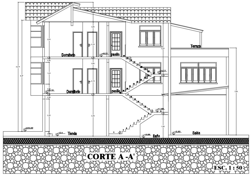 A section view of 12x15m house plan has been given in this Autocad drawing file. Download now.