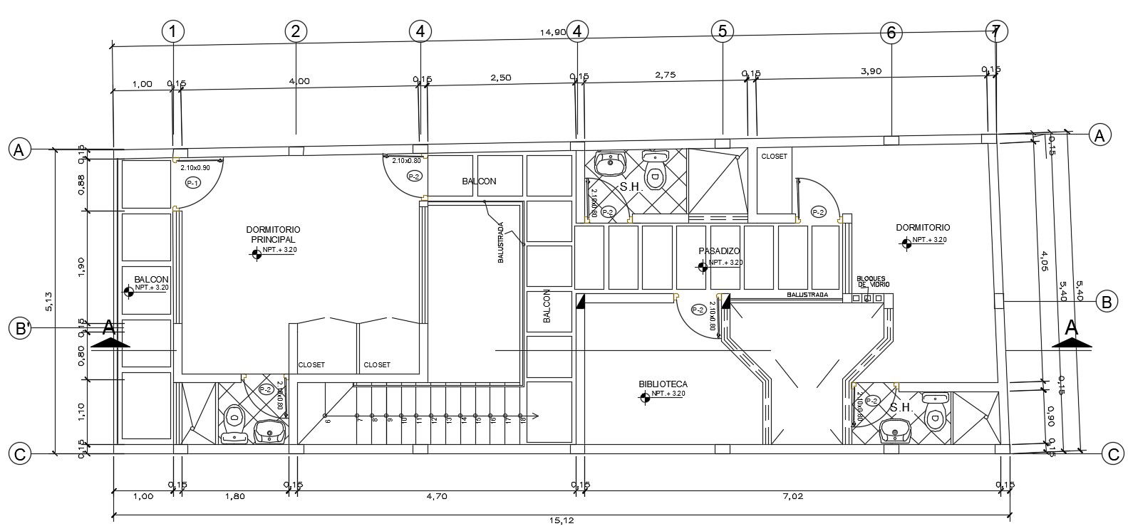 15x6m first floor home plan is given in this Autocad drawing file.Download the Autocad model.