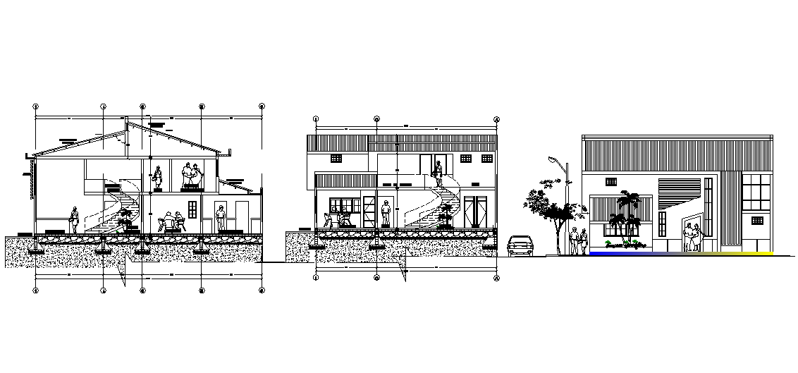 A section view of 12x15 office building is given in this Autocad drawing file. This is G+1 commercial building. In this garden, office area, hall, secretary room, cafeteria, conference room, gent’s toilet, ladies toilet, and other details are mentioned. For more details download the Autocad file. Thank you for downloading the Autocad drawing file and other CAD program files from our Cadbull website.