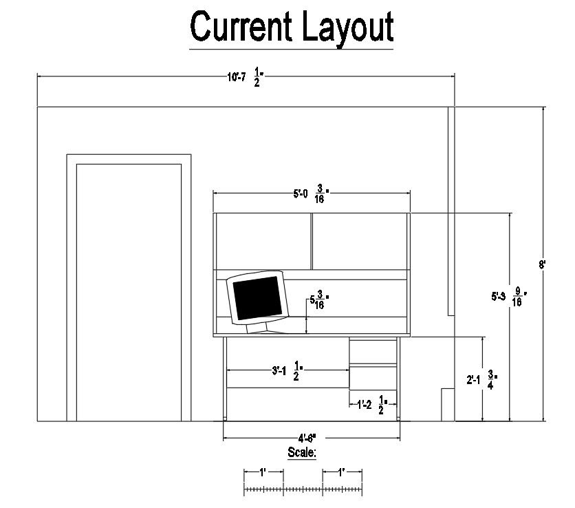 An elevation view of 10’x10’ office work building is given in this Autocad drawing file. Height of the building is 8’. Total work area is 24sqft. For more details download the Autocad drawing file. Thank you for downloading the Autocad file and other CAD program files from our website.