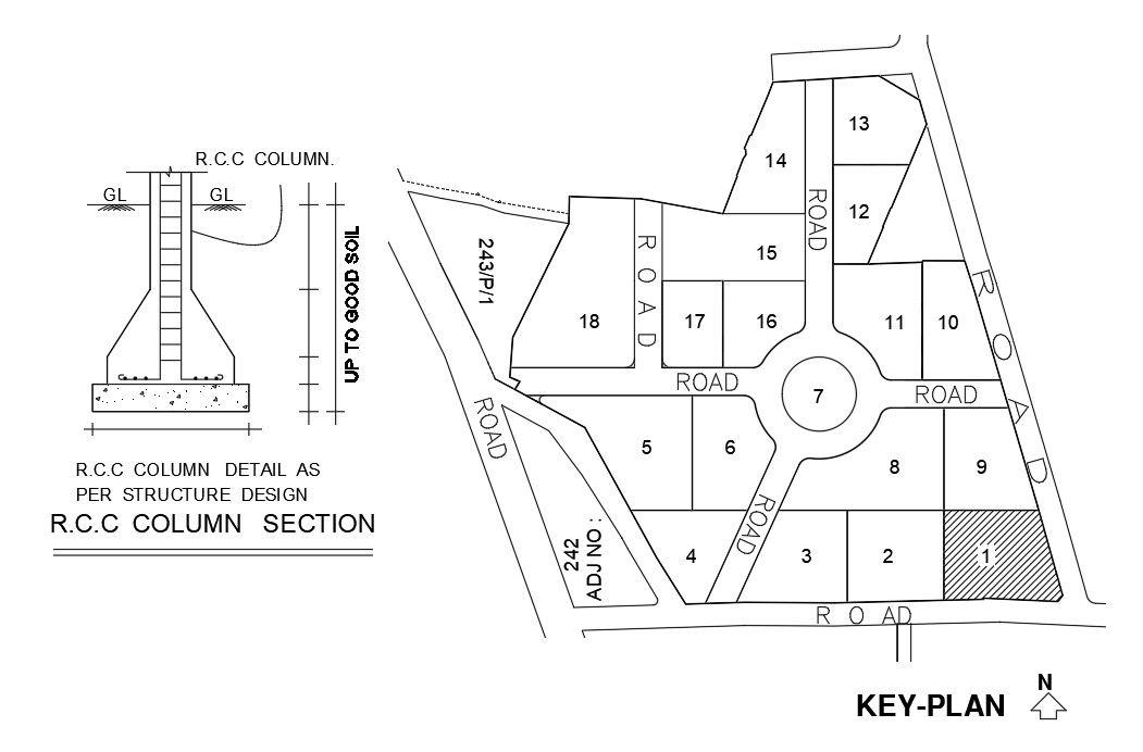 Key plan of 52x43m commercial shop is given in this Autocad drawing file. This is G+4 commercial building. Basement floor is provided for car parking. In this existing road and building is mentioned. For more details download the Autocad drawing file. Thank you for downloading the Autocad file and other CAD program files from our website.