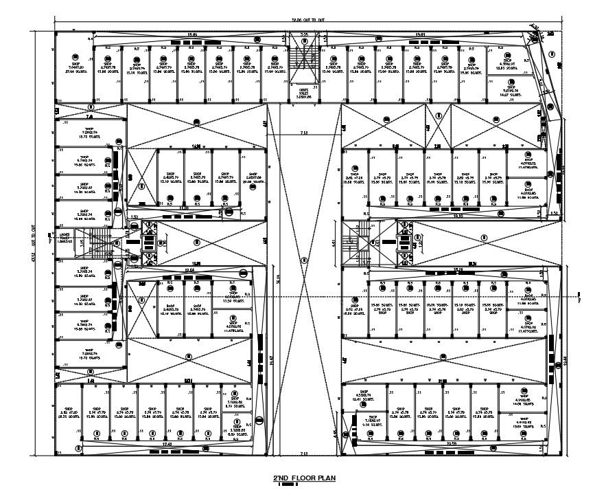 52x43m second floor plan of commercial shop is given in this AutoCAD drawing file. This is G+4 commercial building. Basement floor is provided for car parking. In this many shops are available with measurement. For more details download the Autocad drawing file. Thank you for downloading the Autocad file and other CAD program files from our website.