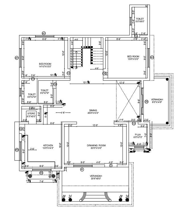 40’x48’ ground floor house plan is given in this Autocad drawing file. This is G+1 house building. Kitchen, dining area, drawing room, living hall, common toilet, master bedroom with attached bathroom, kid’s room with attached toilet, puja room, store room and balcony is available. For more details download the Autocad drawing file. Thank you for downloading the Autocad file and other CAD program files from our website.