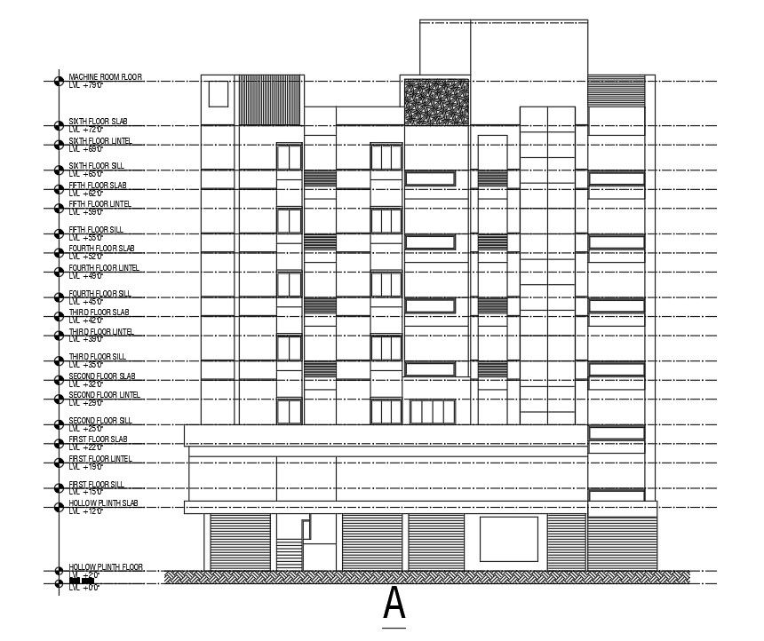 South side section view of 155’x125’ apartment building is given in this Autocad drawing file. This is G+ 6 apartment building. Ground floor is provided for car parking. In each floor6 houses are available. These houses are consists of kitchen, dining area, living area, master bedroom with attached toilet, kid’s room, guest room with attached bathroom, balcony and wash area. For more details download the Autocad drawing file. Thank you for downloading the Autocad file and other CAD program files from our website.
