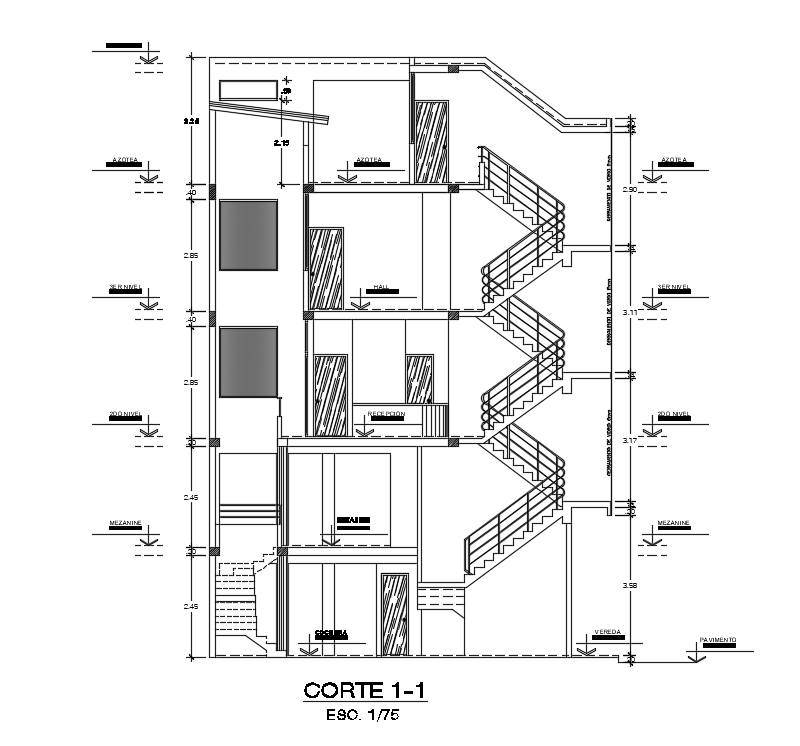 A section view of 16x13m apartment building is given in this Autocad drawing file. This is G+ 4 apartment building. In this car parking, verandah, local shop and common toilet, master bedroom with attached toilet, guest room with attached toilet, common toilet, local shop, and store room is available. For more details download the Autocad file. Thank you for downloading the Autocad file and other CAD program files from our website.