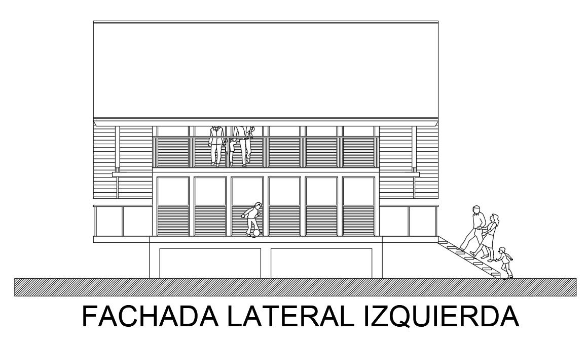 Left side elevation view of 5x13m house building is given in this Autocad drawing file. Download now.