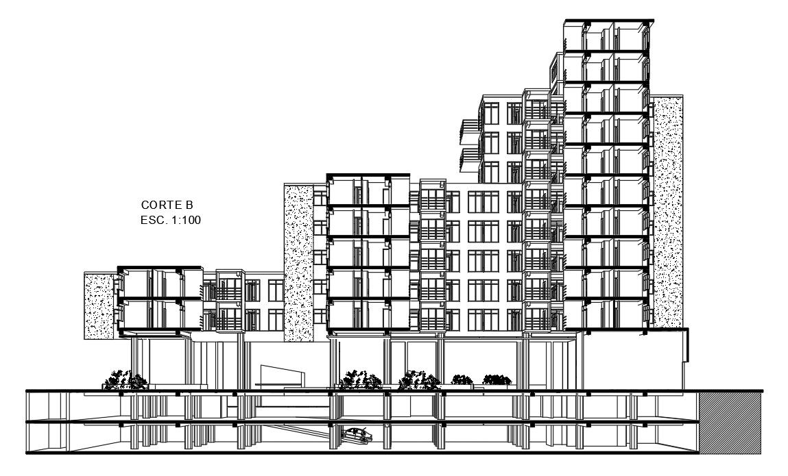 Isometric view of 44x70m apartment building is given in this Autocad drawing file. Download now.