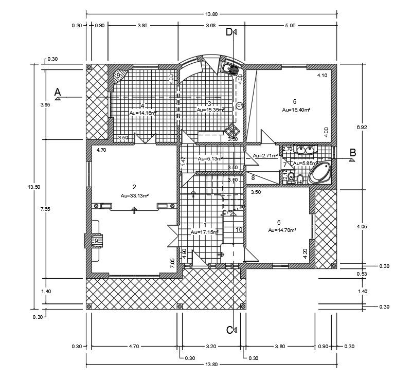 14x13m ground floor house plan is given in this Autocad drawing file. Download now
