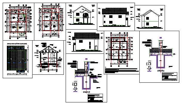 This is a Single family housing design drawing with planing design ground floor and first floor,elevation design drawing, foundation detail drawing in this auto cad file.
