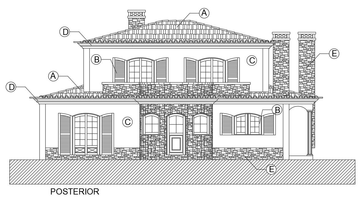 Back side elevation view of 14x13m house building is given in this Autocad drawing file.Download now.