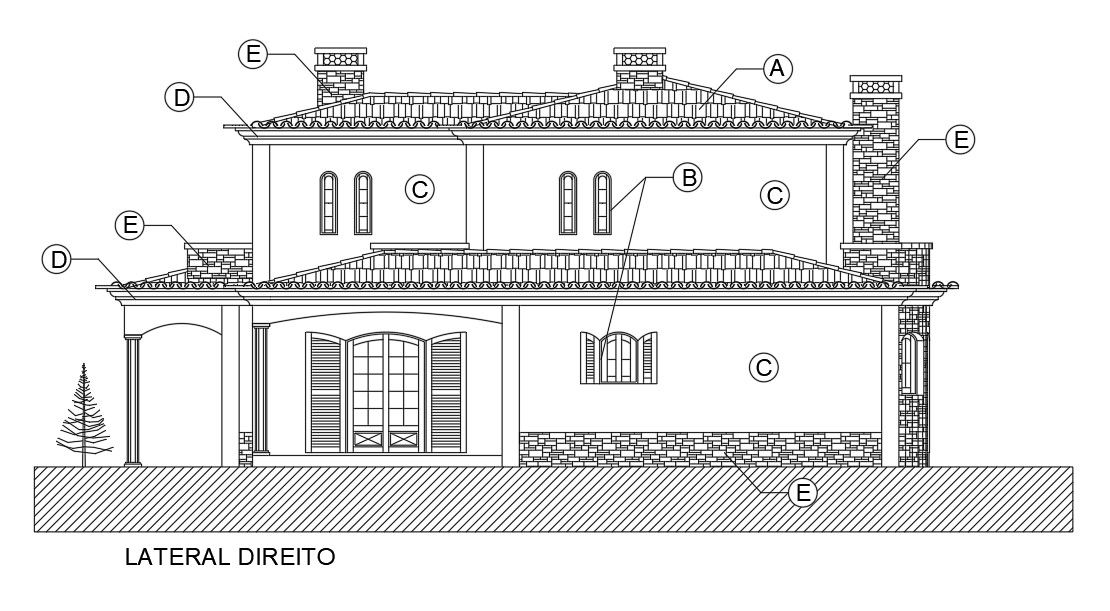 Right side elevation view of 14x13m house building is given in this Autocad drawing file.Download now.