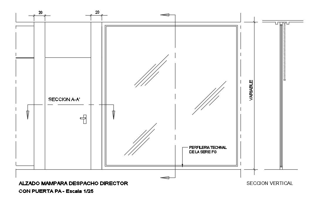 Elevation of director's office screen with pa door detail drawing file is given in this Autocad drawing file. Download now.