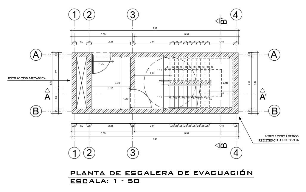9x4m staircase plan is given in this Autocad drawing file. Download the Autocad model.