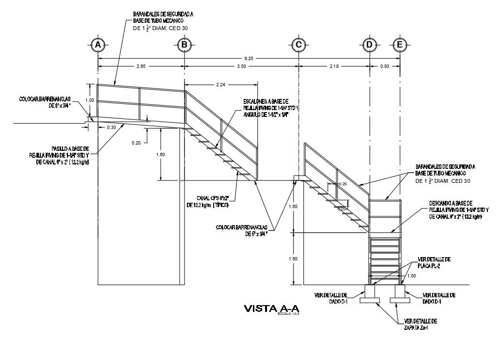 10m length of staircase section view has been given in this Autocad drawing file. Download now.