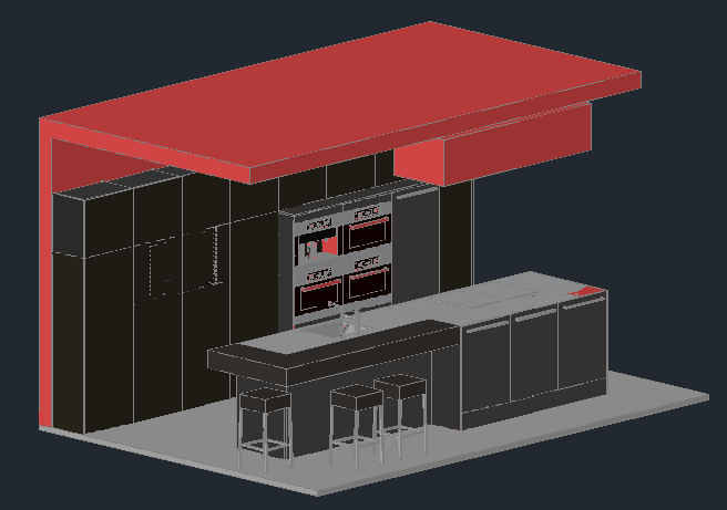 Here the 3d modern kitchen design drawing in this auto cad file.