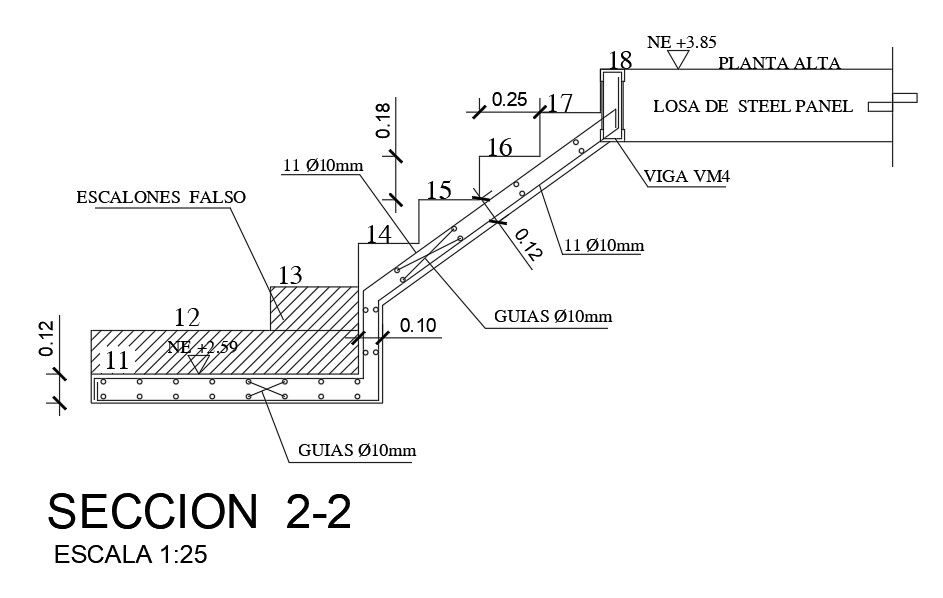 Right side section view cum foundation detail of of 4m length of staircase is given in this Autocad drawing file. Breadth of the staircase is 1m. Thread and riser size is 300mm and 150mm respectively. For more details download the Autocad drawing file. Thank you for downloading the Autocad drawing file and other CAD program files from our website.