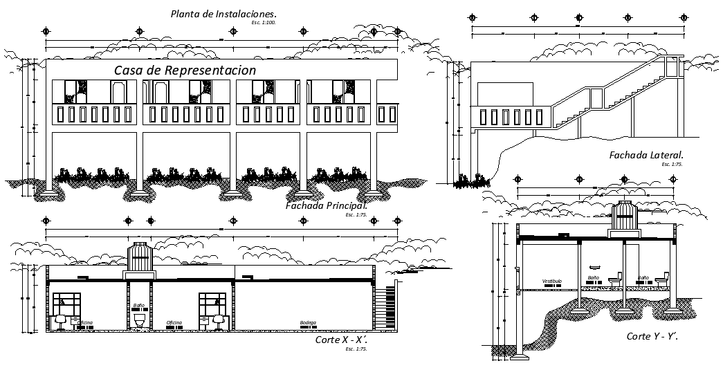 An elevation view of 18x12m office building is given in this Autocad drawing file. Total height of the building is 7.3m. This is G+ 1 office building. In this office work area, gent’s toilet, ladies toilet, reception and waiting area is available. For more details download the Autocad drawing file. Thank you for downloading the Autocad drawing file and other CAD program files from our website.