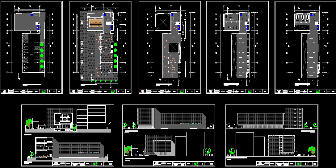 This Leeds City Museum AutoCAD DWG drawing provides a detailed architectural layout, showcasing the complete design of a multi-level museum structure. The file includes floor plans, centerline plans, elevations, and sectional details, offering a full overview of the building's layout and design elements. This CAD drawing is highly detailed, making it useful for architects, students, and engineers studying large-scale cultural or public building projects.