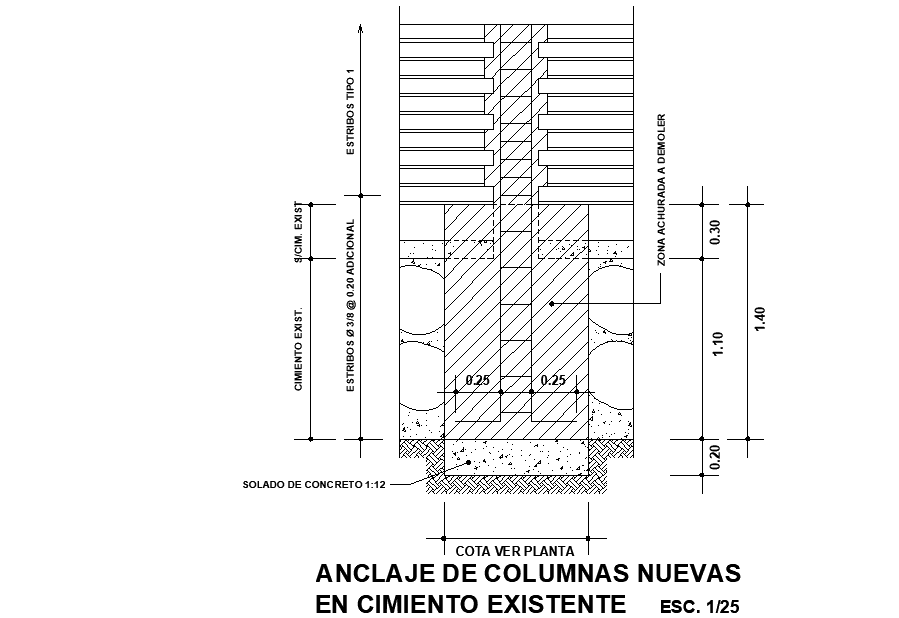 Column foundation detail drawing is given in this Autocad drawing file. Height of the foundation is 1.4m. Measurement details are given in this model. For more details download the Autocad drawing file. Thank you for downloading the Autocad drawing file and other CAD program files from our website.