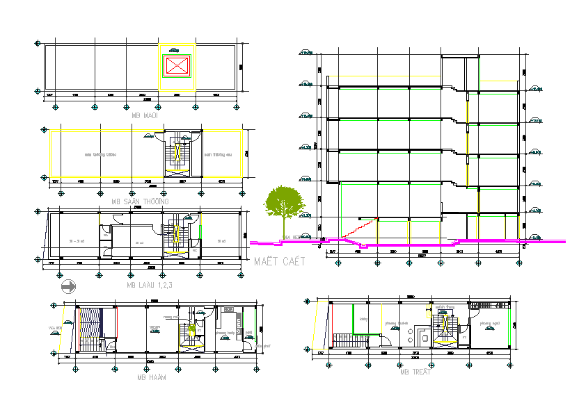 Commercial complex plans architecture, all floor lay-out detail, steel bar section drawing detail.