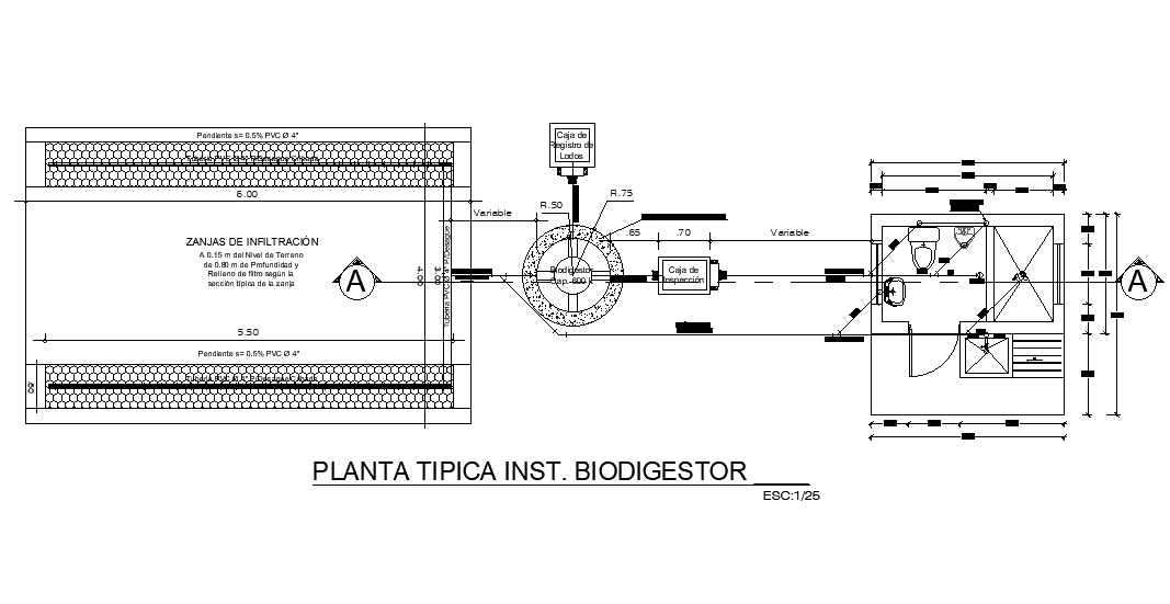 3x3m bathroom plan of bio digestor is given in this Autocad drawing file.Download the Autocad model.