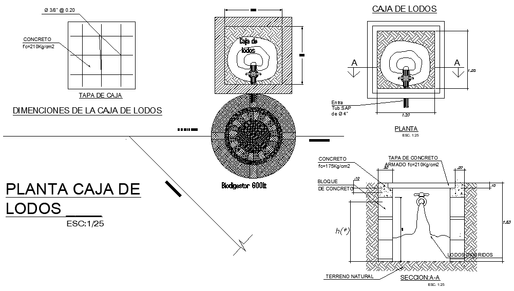 Sanitary sludge box plan detail drawing is given in this Autocad drawing file. Capacity of biodigestory is 600litre. Plan and section view is given in this model. Other details are given in this model. For more details download the Autocad drawing file. Thank you for downloading the Autocad drawing file and other CAD program files from our website.