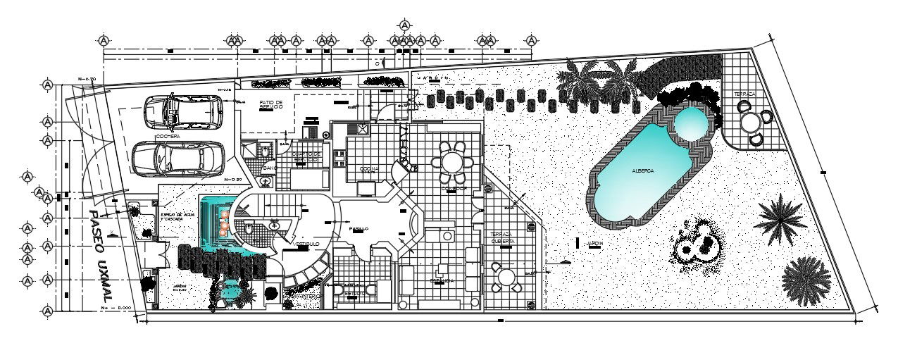 The most beautiful Hotel floor plan with a swimming pool is provided. Car parking, Gardens, swimming pool, furniture drawings are given in this cad drawing. This hotel floor plan looks amazing. It will be very useful for civil engineers. Download now.