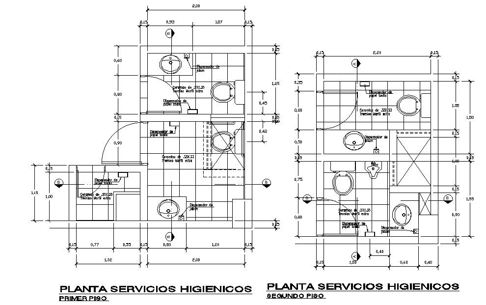 Plumbing layout of 43x23m bank plan is given in this Autocad drawing file.Download now.