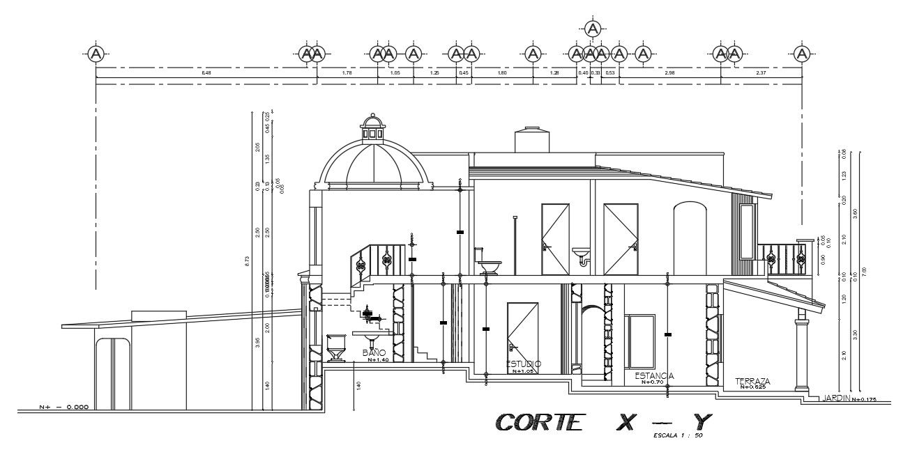 XY cross-section details of the hotel building are shown in this cad drawing file. Doors, windows, balcony, staircase side view are visible in this drawing. This cad drawing is very helpful for civil engineers and students. Thanks for downloading cad drawing files from our website. Download this cad drawing file now.