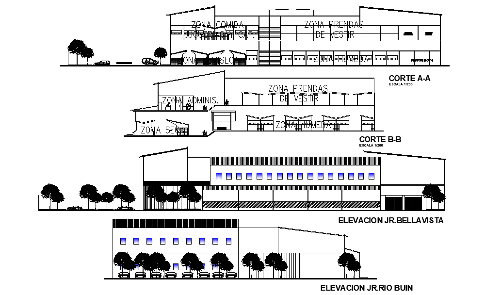 A section view of 85x58m office building is given in this Autocad drawing file.Download the Autocad model.