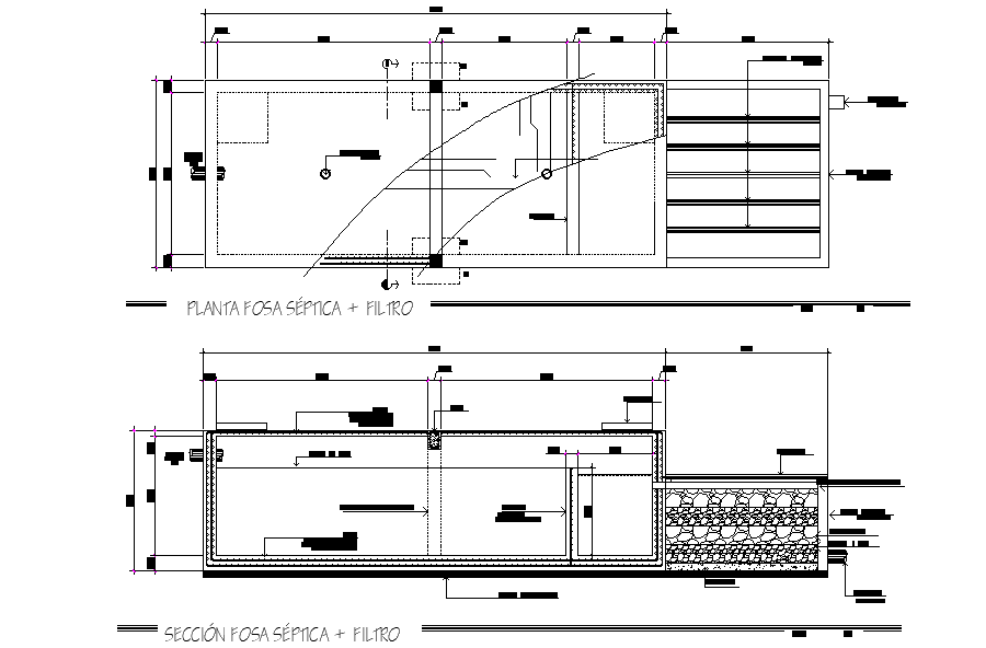 7x3m sanitary septic tank plan is given in this Autocad drawing file. Download now.