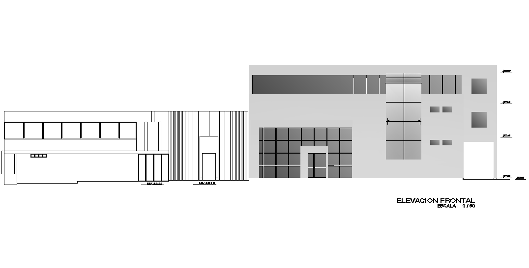 Font elevation view of 54x25m municipal office building is given in this Autocad drawing file.Download now.