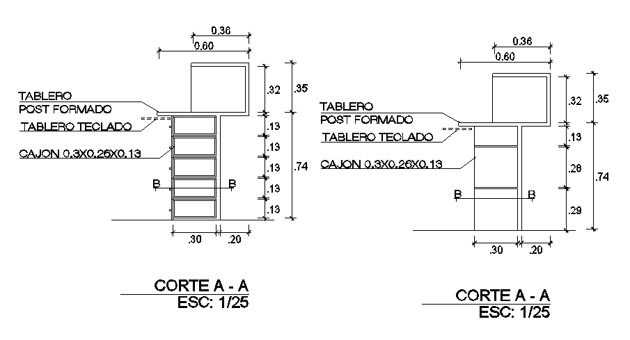 This AutoCAD DWG file presents a detailed 0.5x1m drawer plan, featuring essential components such as the keyboard tray, post board, and other structural elements. Ideal for architects, interior designers, and CAD professionals, this drawing facilitates precise furniture layout planning for residential, office, and commercial spaces. The file's clear annotations and dimensions ensure accurate implementation in your design projects. Download now to enhance your CAD library with this versatile drawer model.