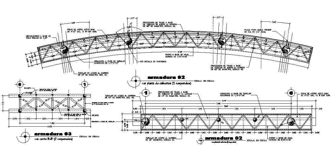 Armor structural detail of 15x8m roof plan is given in this Autocad drawing file.Download now.