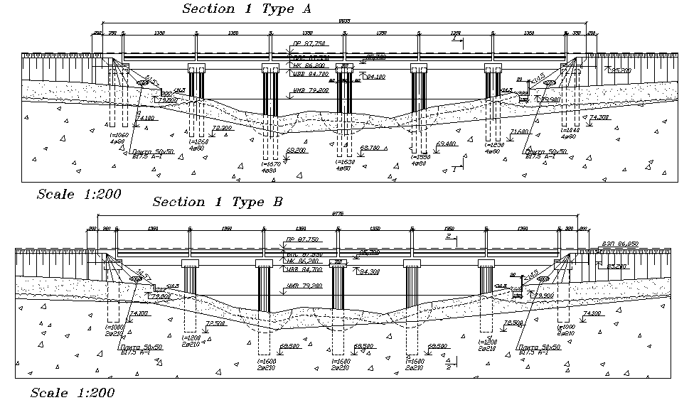 80m length of the bridge plan is given in this Autocad drawing file. Distance each column is given in this bridge plan. 1:200 scale is provided in this bridge. For more details download the Autocad drawing file. Thank you for downloading the Autocad drawing file and other CAD program files from our website.
