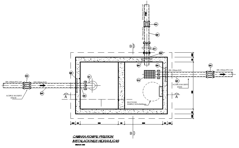 3x2m Hydraulic installation of pressure breaker chamber plan is given in this Autocad drawing file.Download now.