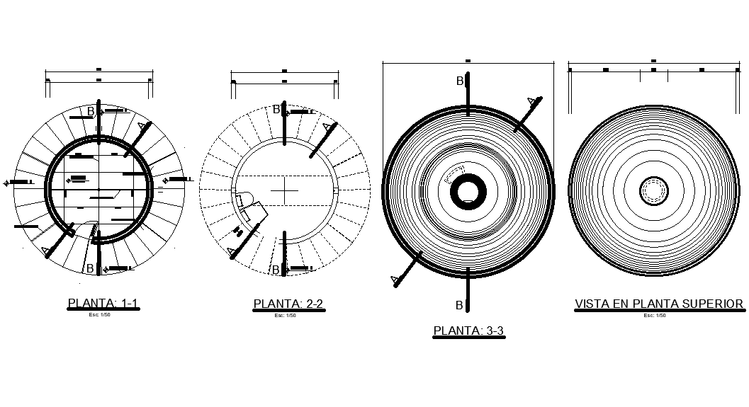 150m3 capacity of reservoir is given in this Autocad drawing file. Download now.