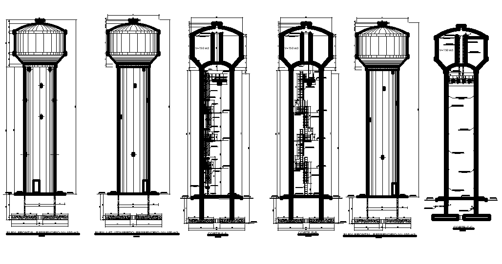 A section view of 150m3 capacity of reservoir is given in this Autocad drawing file. Download now.