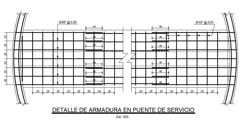 Detail of armor on service bridge plan is given in this Autocad drawing file. Reinforcement details are given in this model. Other details are given in this drawing. For more details download the Autocad drawing file. Thank you for downloading the Autocad drawing file and other CAD program files from our website.