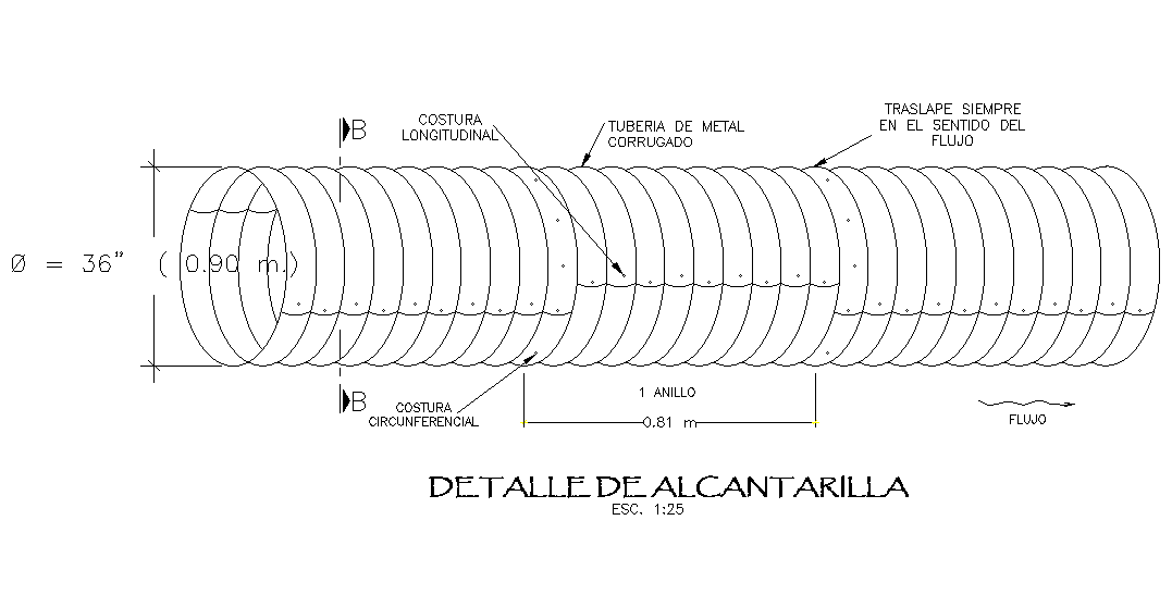 Sewer elevation detail drawing is given in this Autocad drawing file. Diameter of the sewer is 0.90m. Longitudinal elevation view is given in this model. For more details download the Autocad drawing file. Thank you for downloading the Autocad drawing file and other CAD program files from our website.
