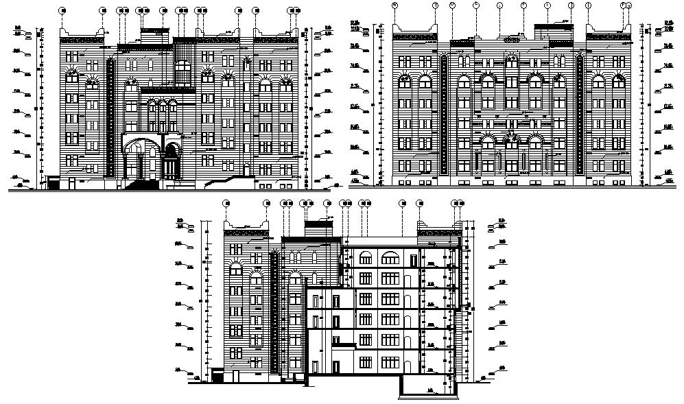 An elevation view of 42x42m office building is given in this Autocad drawing file.Download now.