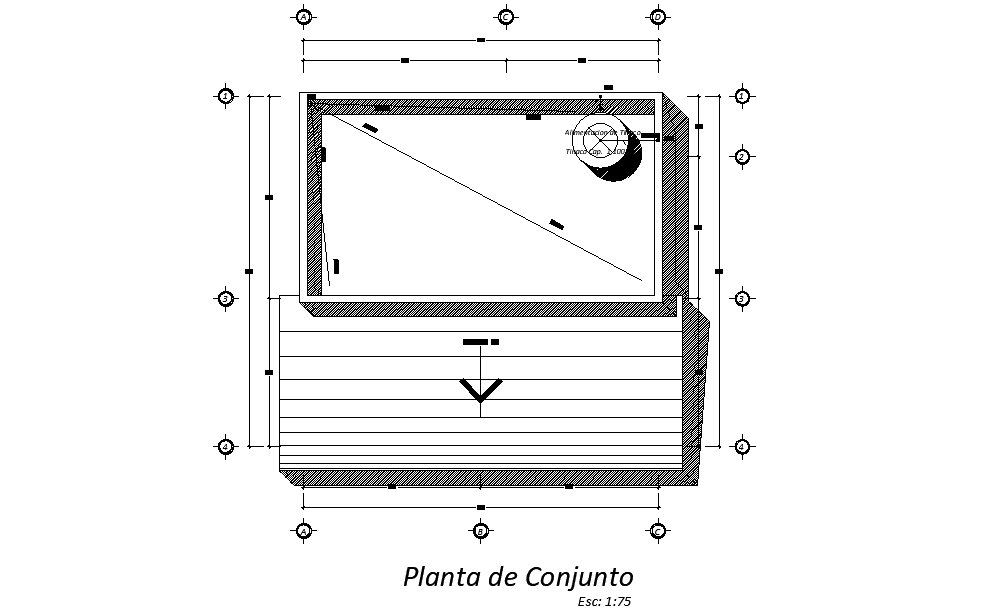 Roof plan of 7x7m office plan is given in this Autocad drawing file. Download now.