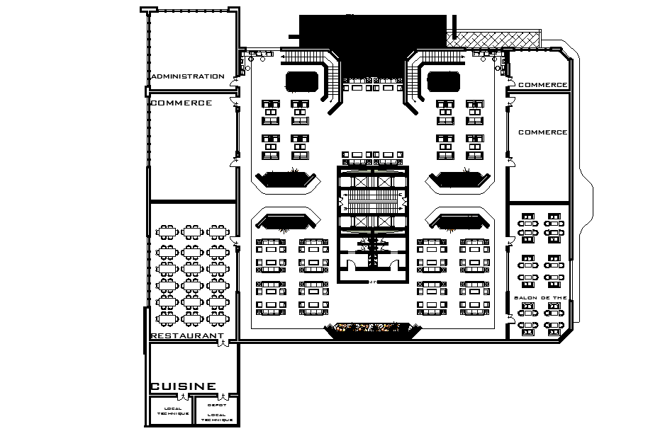 70x65m first floor hotel plan is given in this Autocad drawing file.Download now.
