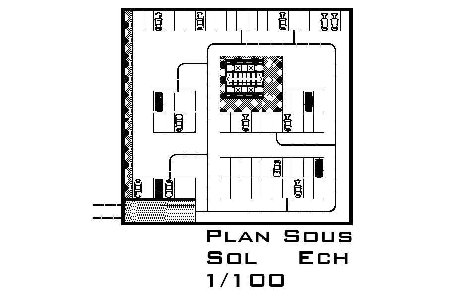 70x65m hotel plan car parking layout is given in this Autocad drawing file.Download now.
