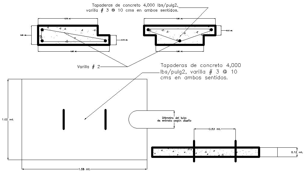 Layout of 2x1m pipe line structure is given in this Autocad drawing file. Length of the inlet pipe is 0.51m. The length of the outlet pipe is 1.1m. Component details are mentioned in this drawing model. For more details download the Autocad drawing file. Thank you for downloading the Autocad drawing file and other CAD program files from our website.