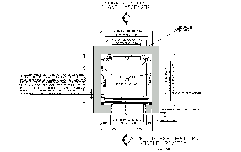 Top view of the 22x28m commercial building elevator is given in this Autocad drawing file. The dimension of the elevator is 1.6x1.8m. For more details download the Autocad drawing file. Thank you for downloading the Autocad drawing file and other CAD program files from our website.