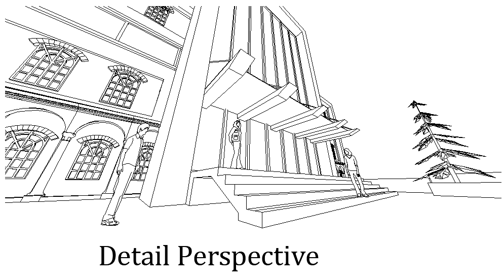 Detail perspective view of 57x50m municipal office building is given in this Autocad drawing file.Download now.