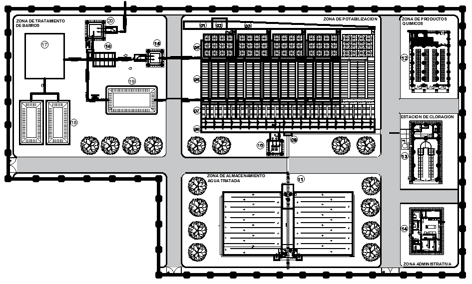 190x109m water treatment plan is given in this AutoCAD drawing file.Download the Autocad model.