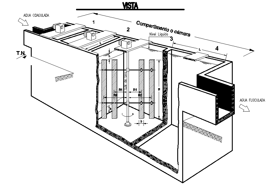 Isometric mechanical flocculationunit plant is given in this Autocad drawing file. This is given for water treatment plant. Quick mixing chamber is provided at the top of the unit. For more details download the Autocad drawing file. Thank you for downloading the Autocad drawing file and other CAD program files from our website.