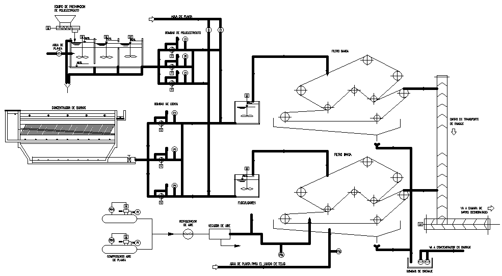 Water pipe line is given for water treatment plant is given in this Autocad drawing file. In this transportation belt, sludge pumps, polyelectrolite pumps and other details are available. For more details download the Autocad drawing file. Thank you for downloading the Autocad drawing file and other CAD program files from our website.